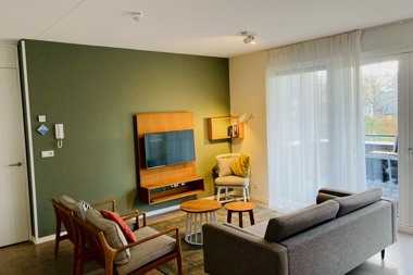 Op het meest luxueuze vakantiepark van Limburg, Dormio Resort Maastricht, vindt u het sfeervolle Wilhelmus. Aan dit gezellige plein ligt op de eerste verdieping het lichte 6-persoons comfortappartement nummer E55. Dit royale appartement heeft een gebruiksoppervlakte van 90m2. Het appartement heeft een ruime en compleet ingerichte woonkeuken met aangrenzend een zit- en eetgedeelte. De woonkamer is direct gelegen aan het ruim balkon van 17,3 m2, gelegen op het zuiden. De keuken is voorzien van luxe apparatuur en een stenen aanrechtblad. Verder beschikt het appartement over 3 slaapkamers met 2 éénpersoonsbedden en een complete badkamer met ligbad en douche. Eén van de slaapkamers beschikt over een Frans balkon en in de hal een separaat tweede toilet. Het appartement beschikt over een ruime berging op de begane grond.